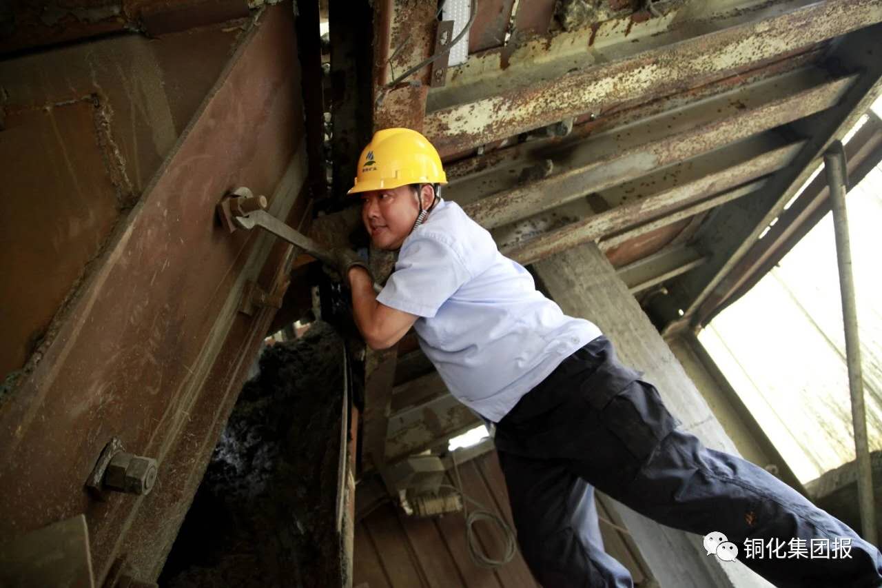 下了皮带廊,走到主井矿仓下,老郭自豪地指着头顶上方:“8个漏斗,过去维修和更换都是委外,现在都是我带人自己干……省多少钱我不晓得,自己的事情就该自己干,能省一个是一个!”说到兴奋时,他还掏出手机上图片给我讲2个月前他们打的一场硬仗:主井35米矿仓漏斗因矿石提运冲击导致四边混凝土严重磨损,矿业公司听取老郭的建议,准备为漏斗四边安装4块钢板以保护受损的混凝土墙体。为了最大限度减少对主井出矿的影响,只给他们48小时的停产时间。头一次接这大活的老郭也没犯怵,提前准备好钢板、木条等材料,将8名维修工分成3班,白班和小夜班清漏斗、制作安装安全护板、镶嵌钢板,大夜班专门焊接钢板。啃了2天的方便面,提前2小时完工将漏斗交付使用……