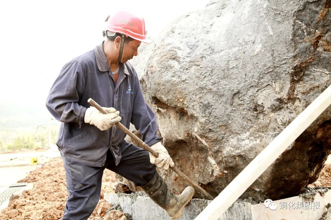 这些巨石来自露采堑沟底部,因实施矿山资源综合利用得见天日,用于扮靓广场,成为景观。
