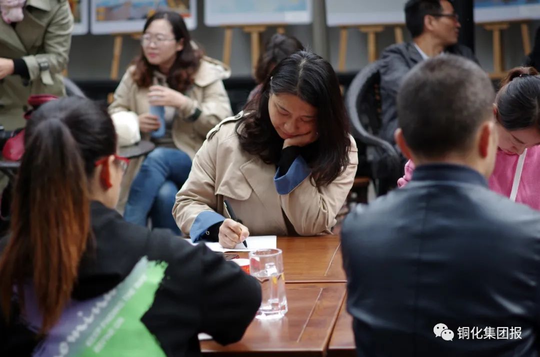 “好香啊,真是神仙处所!”“脑洞够大呀,在这儿培训也是享受!”一进门,通讯员们便被书院典雅秋色和浓郁桂香所吸引,就连《万象城AWC日报》与《铜化集团》报的4位老师也忍不住赞叹:“花香伴书香,确是看书、学习的佳境!”几张小桌拼湊在院里的桂花树下,小方凳围坐一圈,培训班正式开课。没有电子屏,也没有刻意准备的课件,一缕花香,一杯清茶,抛开拘谨,“师生”促膝围坐,开启了“唠嗑”式培训。通讯员们把平时找新闻、写新闻过程中遇到的困惑、难事拿出来发问求解,4位编辑老师也结合多年采、写、编经验和现实所遇事例尽心为大家答疑解惑,通讯员们之间还结合自己见报之作分享了各自心得。