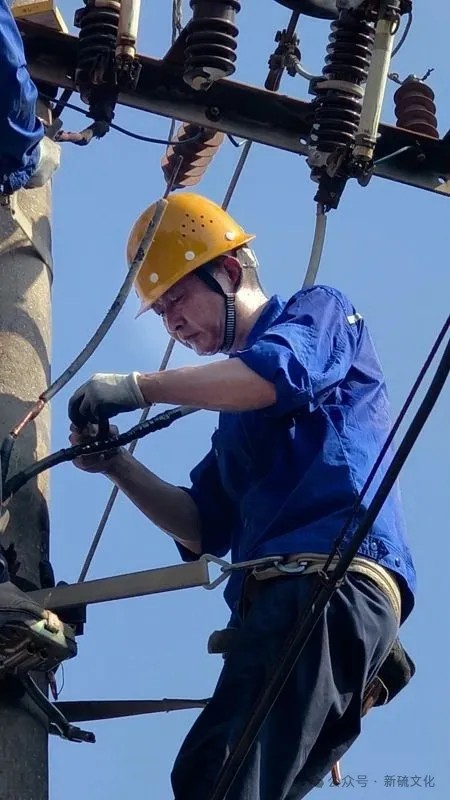 时间一分一秒过去,阳光越来越炙热,温度也越来越高。汗水很快浸湿了电杆上聂尔保、曹庆鑫两名抢修电工的工装。任凭汗珠不断顺着脸颊和衣衫滴落在地上,他们无暇顾及。两人在高空中相互配合、快速更换令克,小心翼翼地重接即将熔断的接头,杆下安全监管人员凝神屏息全程注视着他们的操作。