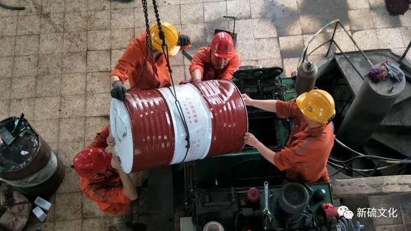 近日,矿业公司运输工区副区长张明文带领技术员、维修人员等,在西翼主井五层放旧油、洗油箱、开行车、吊油筒,更换提升机液压站液压油。